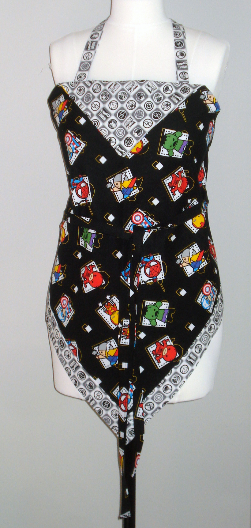 Slip on this chibi hero-patterned apron and assemble your favorite ingredients for the ultimate taste test! Apron fits sizes: S-XL. NOW BACK IN STOCK!