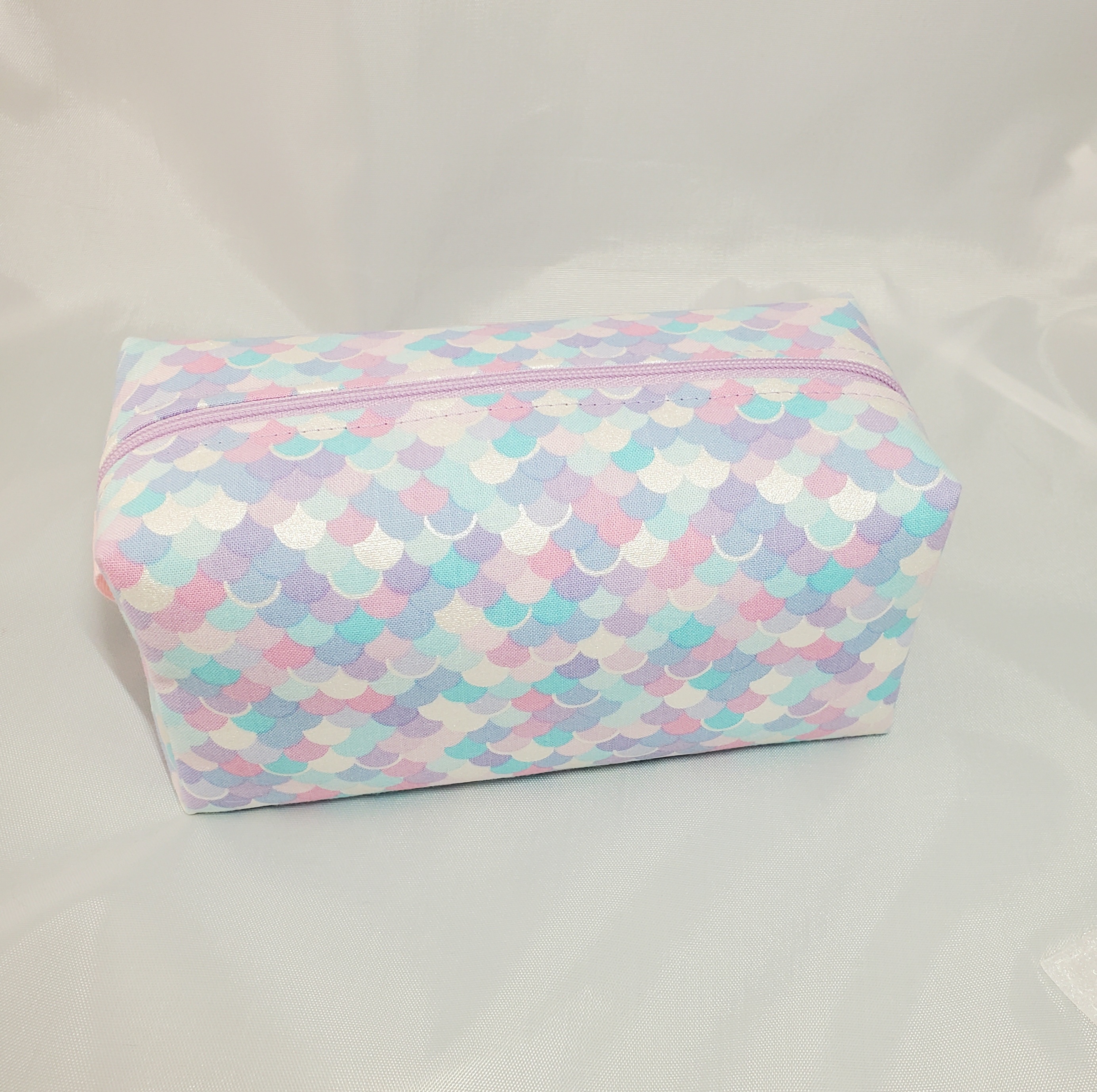 Channel your inner (or outer) mermaid with these pretty pastel bags. Together these fabrics sport gold AND silver metallic accents, perfect for the treasures you'll store inside! Choose the mermaid printed large boxbag, the scale printed medium boxbag, or both! Large size comes with an easy carry handle.